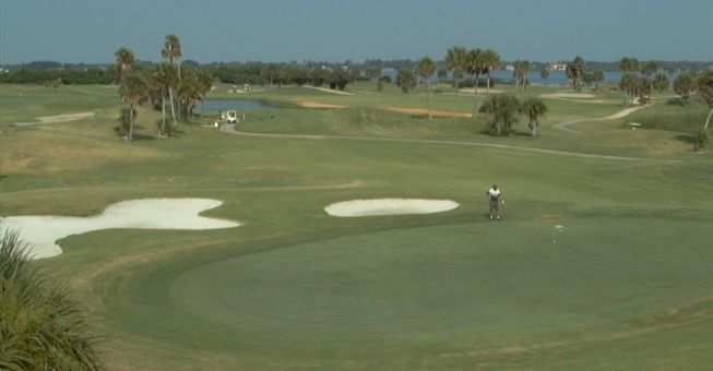 Lakes/River Course at Cocoa Beach Country Club offers a traditional Florida design with water features and tree-lined fairways.