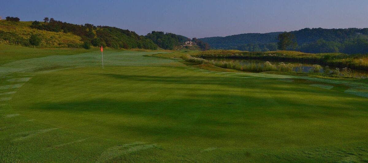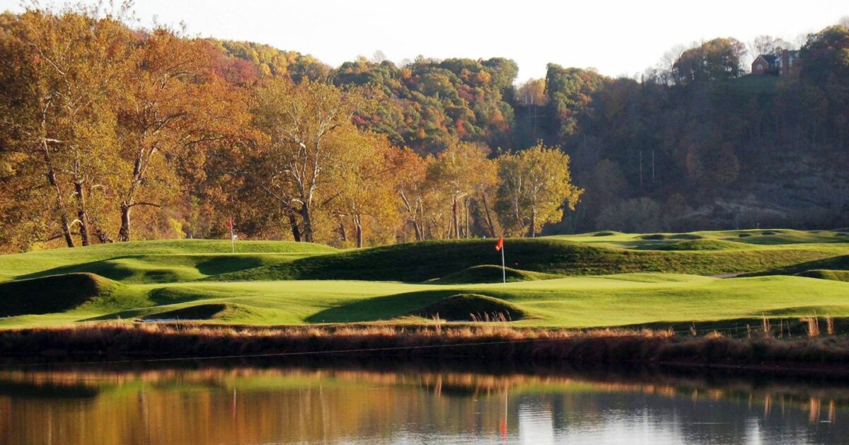 Pete Dye River Course of Virginia Tech is a championship course known for dramatic design and river views.